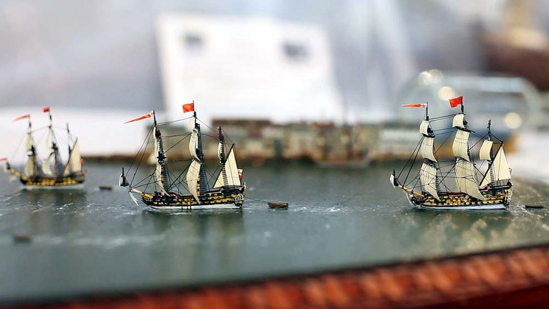 Ihre Schwestern nehmen schon Fahrt auf und verlassen die Hafenstadt. Diorama von Roland Klinger