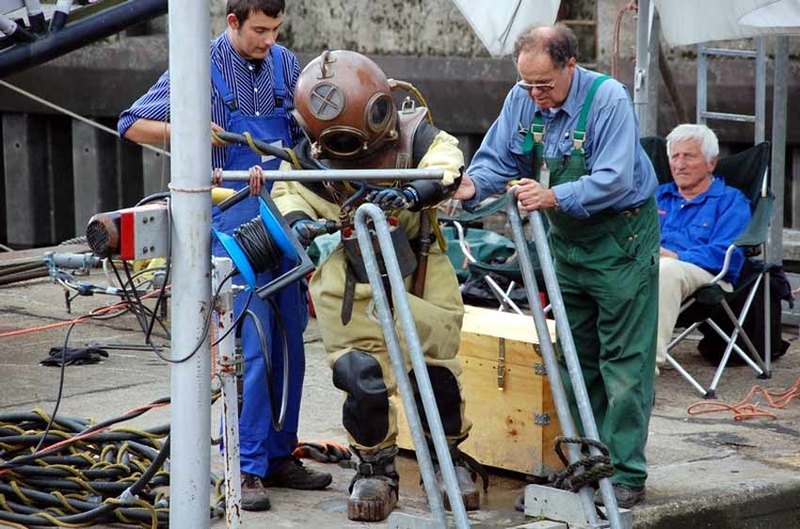 Vorführung mit einem Helmtaucher